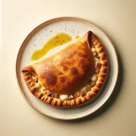 Una pizza chiusa a metà, ripiena di pomodoro, mozzarella e altri ingredienti a scelta, come prosciutto, funghi e ricotta